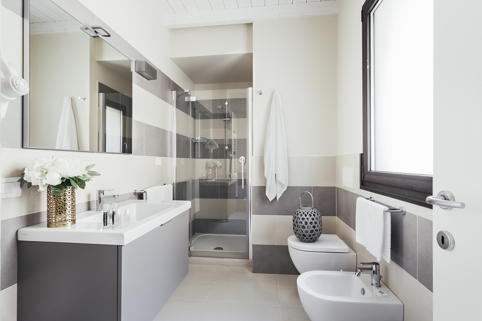 The sleeping area consists of two bedrooms: a double one and a twin one plus another bed. There is also a second, small bathroom.