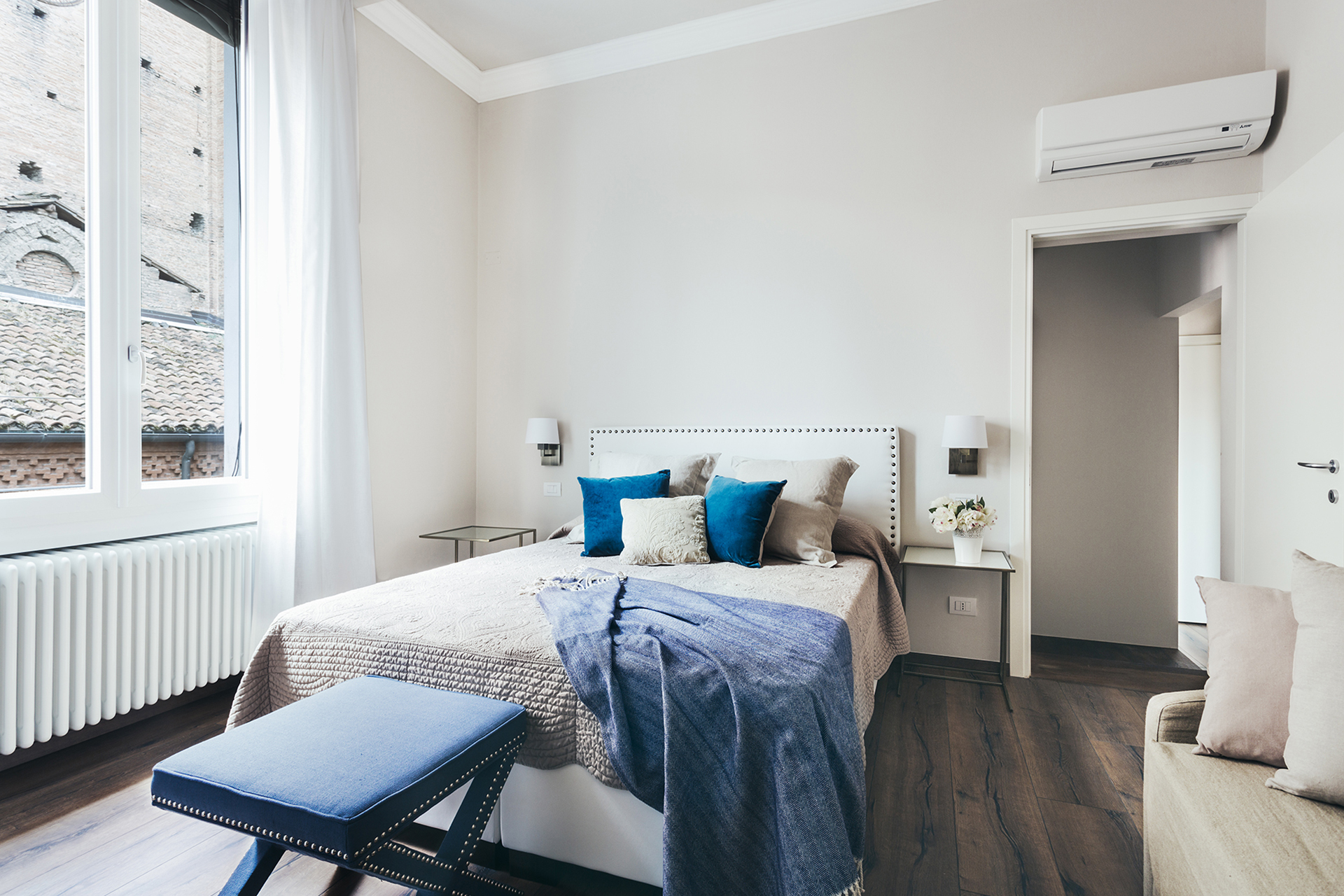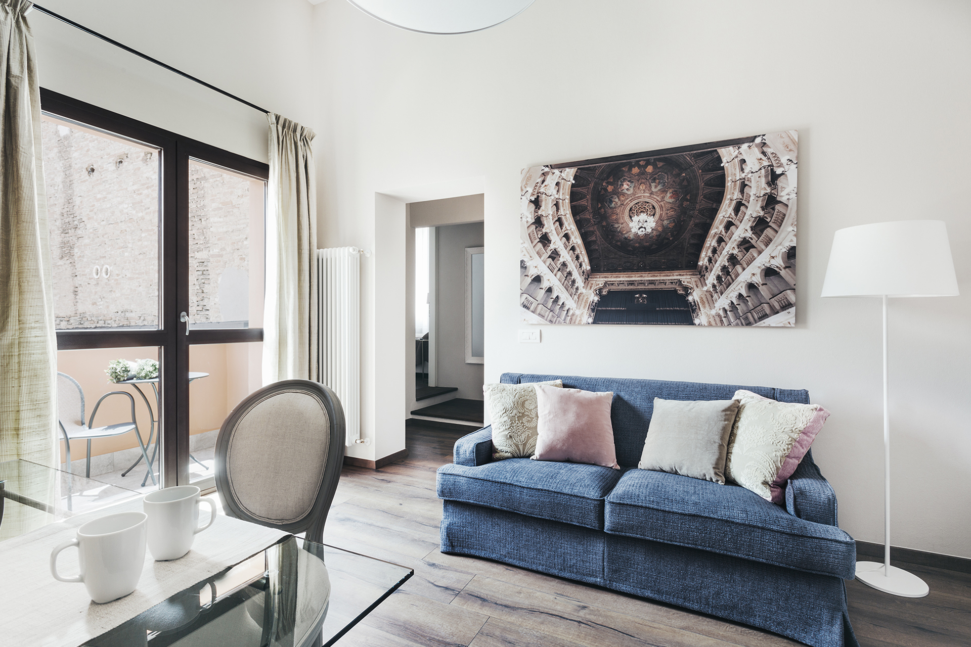 A spacious three-room apartment with a striking view of the Church of Santa Maria dei Servi.
