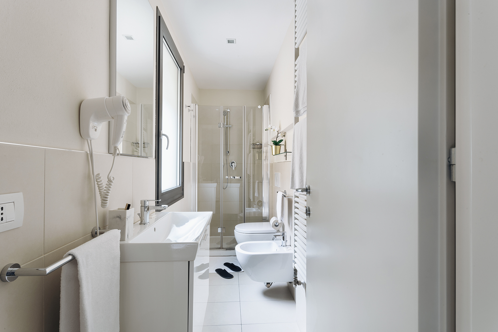 The sleeping area is composed by a double and a twin bedroom and a second bathroom with shower.