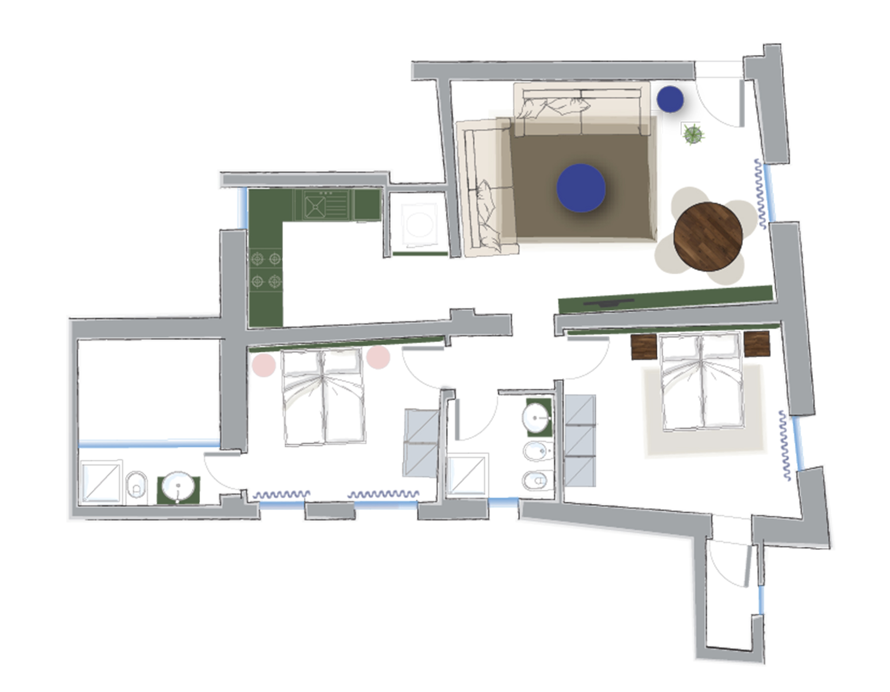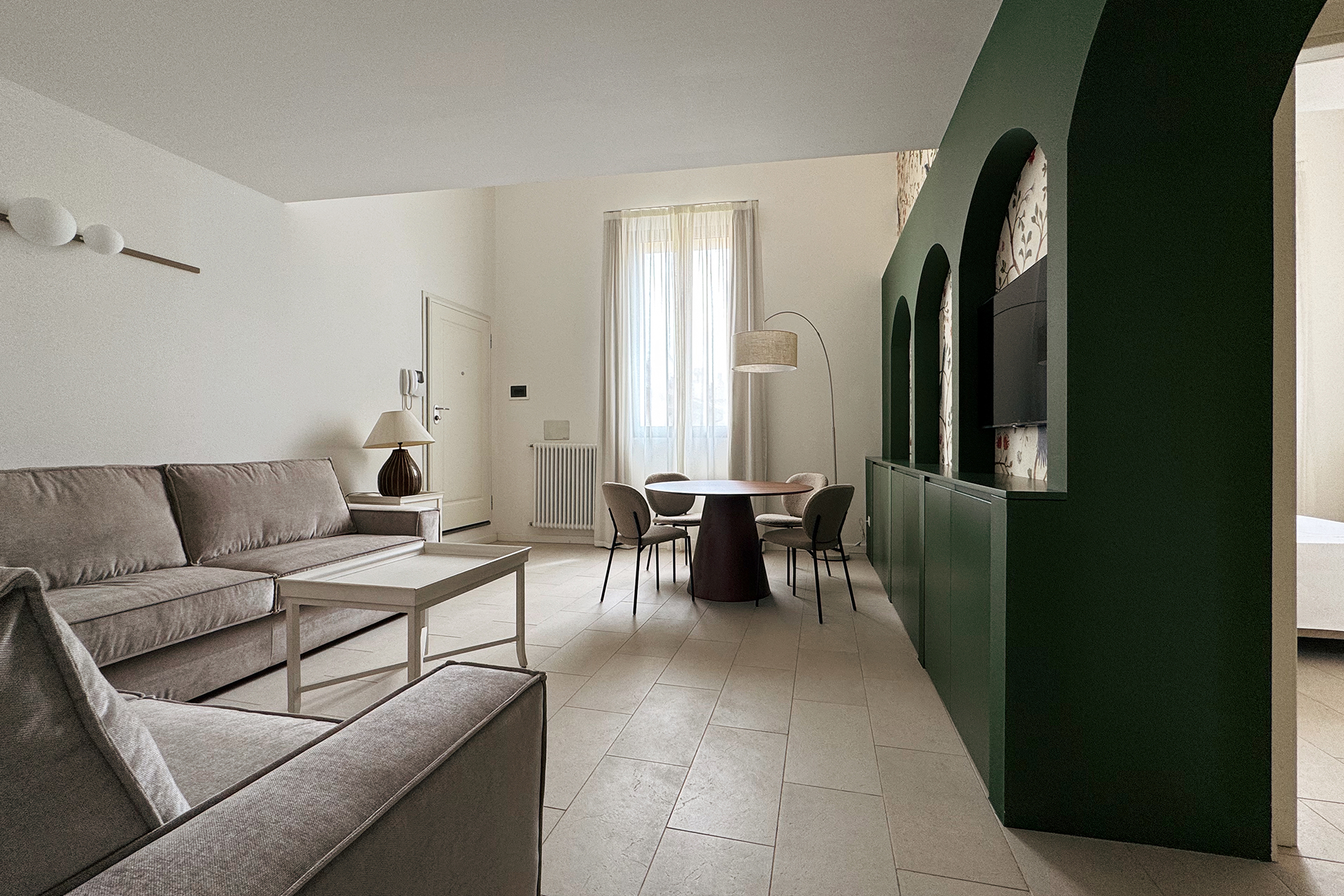 Spacious three-room apartment located at Residence Carducci, via Broccaindosso 33.