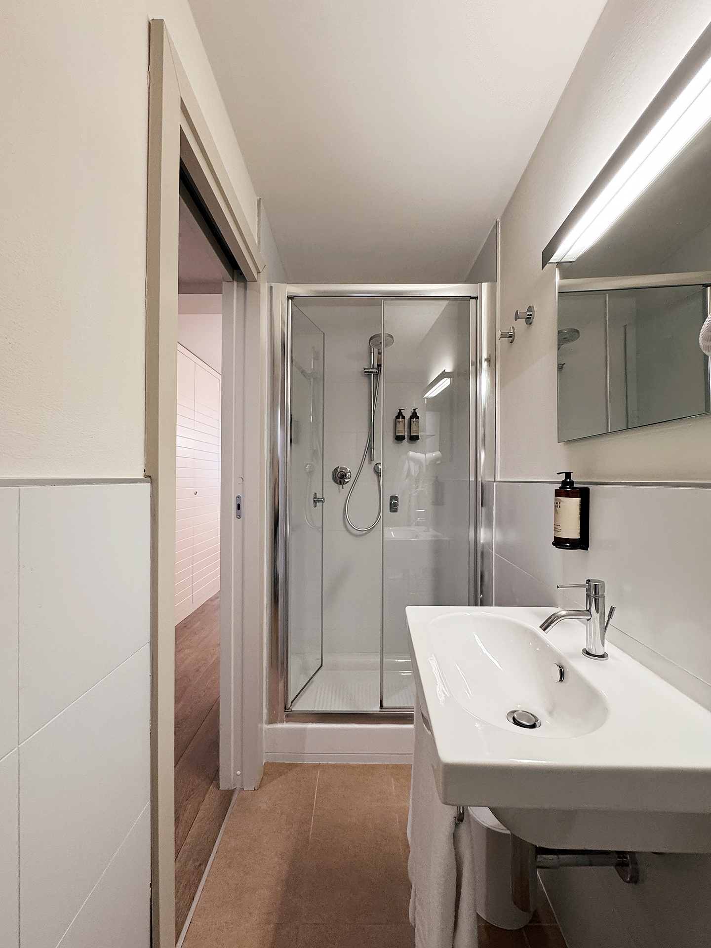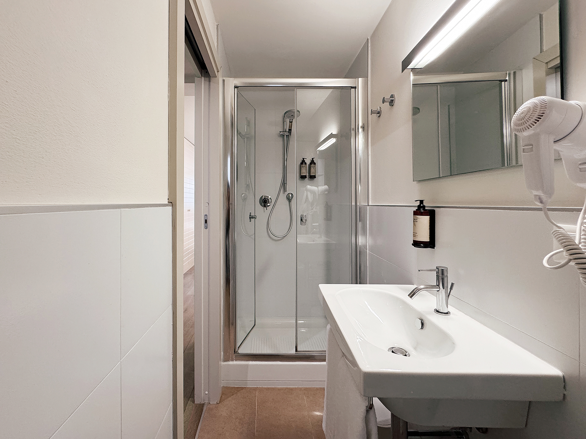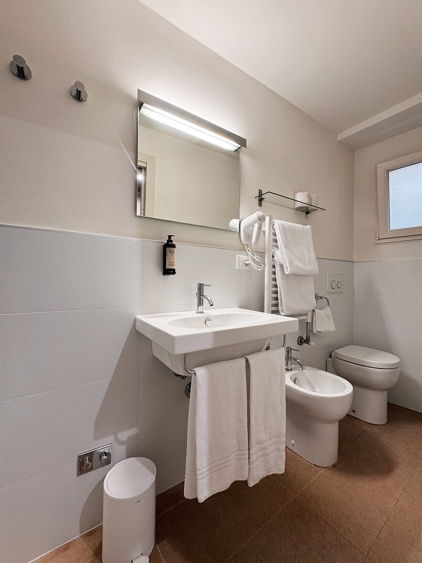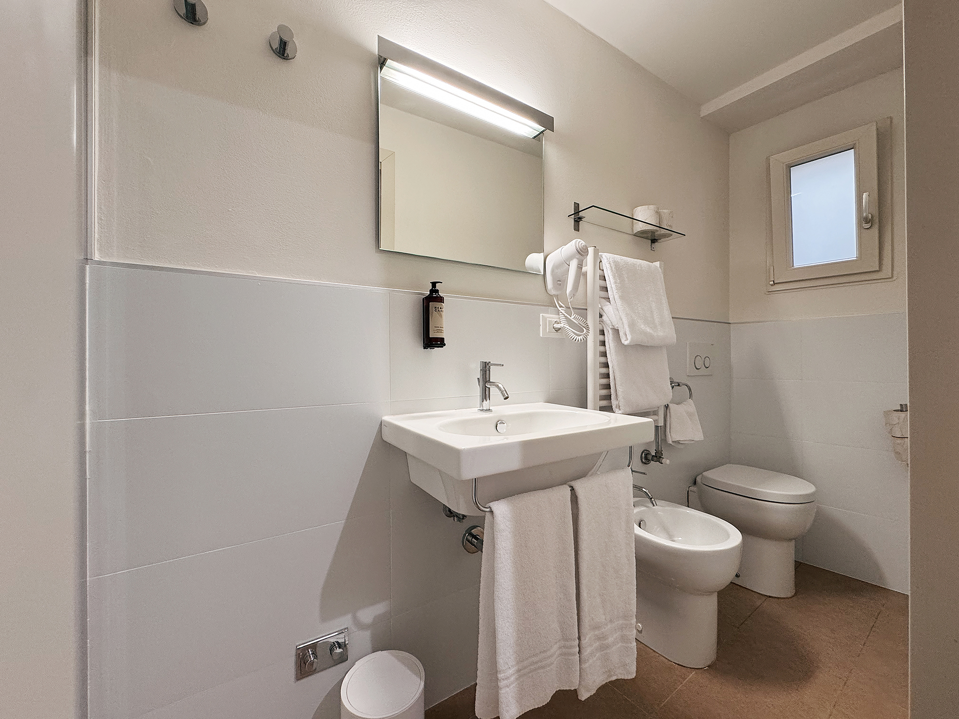 La zona notte è dotata di un letto matrimonialee di un bagno finestrato completo di doccia.